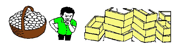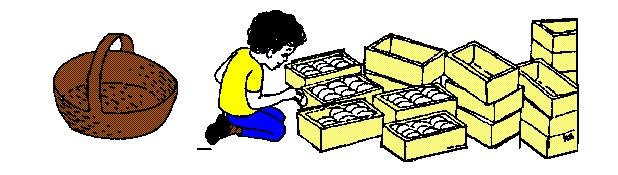 Agora observemos a criança resolvendo concretamente o segundo problema. Ela poderia completar a primeira caixa, depois a segunda, a terceira e assim por diante até que o cestão ficasse vazio.