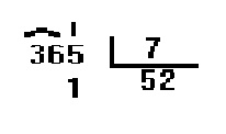 Como 365 = 7 x 52 + 1 , concluímos que um ano não bissexto tem 52 semanas e 1 dia. O problema proposto nos levou a uma divisão não exata. Esta divisão, que deixa resto 1, pode ser representada assim: