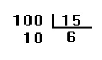 Como 100 = 15 x 6 + 10 , e , 10 < 15, dizemos que na divisão de 100 por 15 o quociente é 6 e o resto é 10.