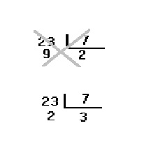 Entretanto não é correto afirmar que, na divisão de 23 por 7, o quociente é 2 e o resto é 9, pois 9 é maior do que o divisor 7 e, portanto, ainda podemos continuar a divisão.
